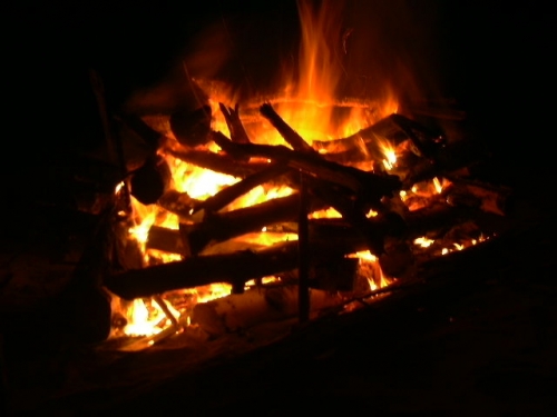 海岸でキャンプファイヤー