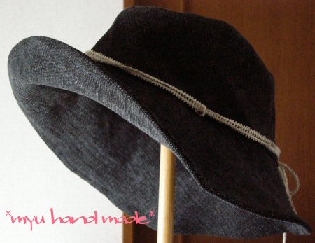 WHISTLE@さんのサファリ風ハットです。昨年はキャンパス地で作ったので、まさに『サファリ』な出来だったのですが、今年は張りのある黒の麻キャンバスでアダルトな仕上がりとなりました。