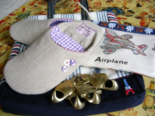 ルームシューズはC&Sさんのパターンで。大好きなパープルでまとめてみました。他に鍋つかみとトートバッグをセットにして。