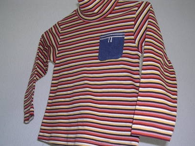 伸びの良い生地です。ポケットはデニム風。名札通し用にテープをつけています。